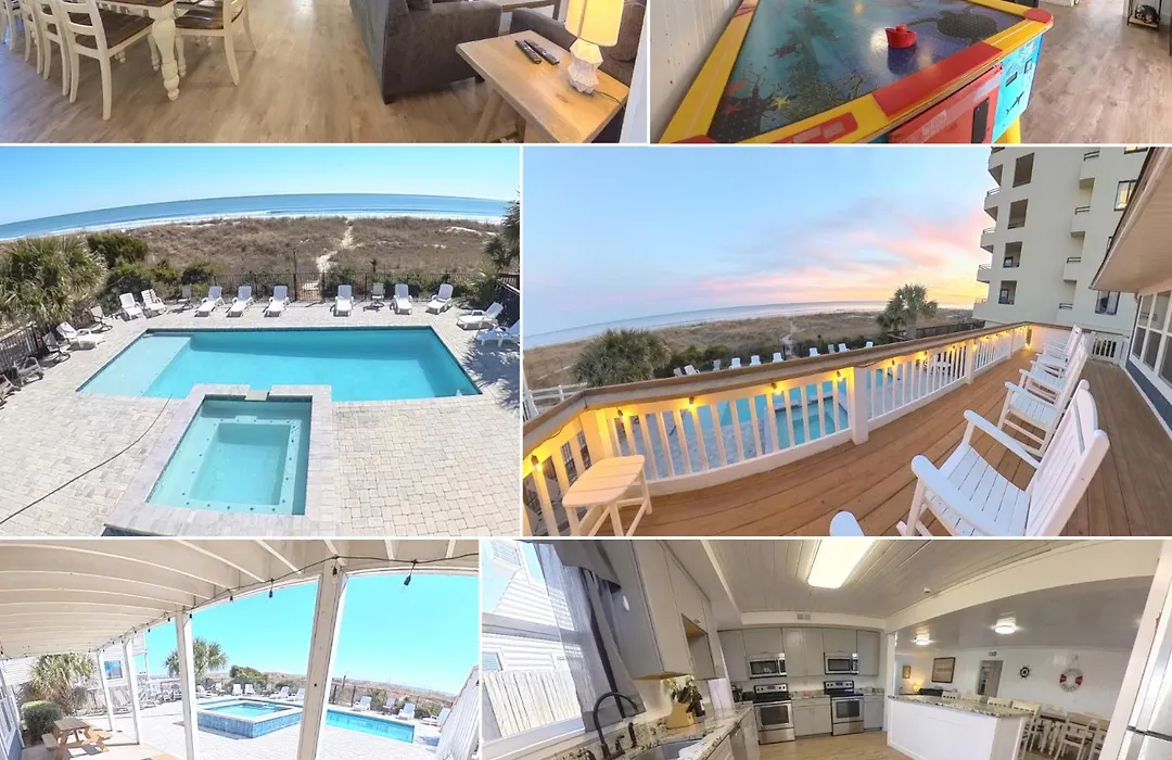 Oceanfront, Centrally Located, Huge 5K Sq Ft Home W Huge Private Pool, Hot Tub, & Gameroom includes an equipped kitchen, offering a fridge, an oven, and glassware. Guests can enjoy a meal at the bar Fishtails Beach Bar, located within reach of the accommodation. Myrtle Beach International airport can be reached in 30 minutes by car. There are beauty services to relax in after a busy day.