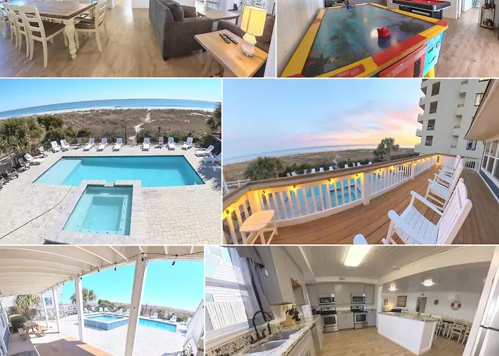 The 8-bedroom Oceanfront, Centrally Located, Huge 5K Sq Ft Home W Huge Private Pool, Hot Tub, & Gameroom Myrtle Beach is located a mere 1.1 km from the Lost Treasure Golf and provides a hot tub. This beachfront holiday home includes free private parking and a terrace with views of the sea.